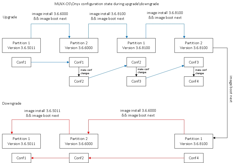 Состояния конфигурации при апгрейде и даунгрейде MLNX-OS\Onyx